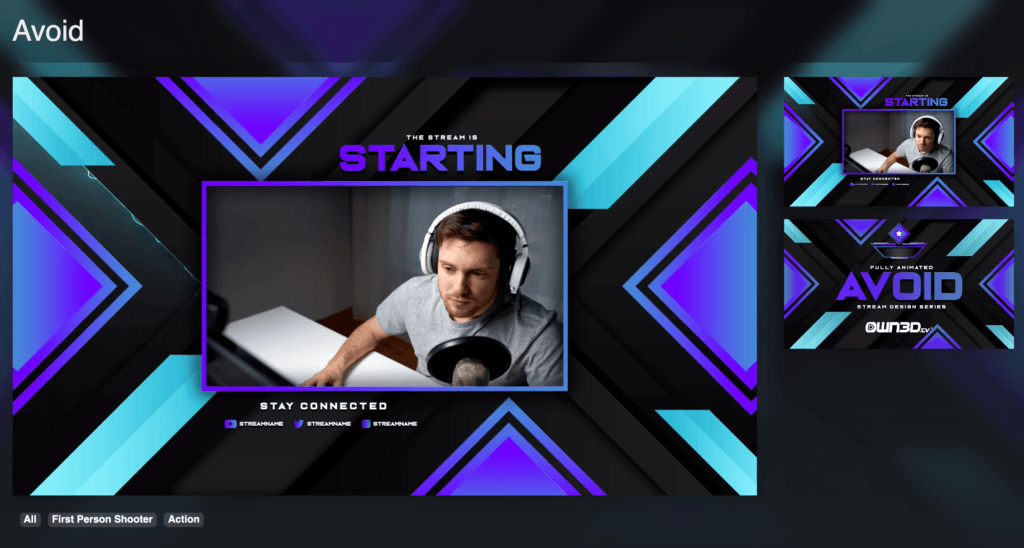 150+ stream overlay templates, alerts, panels, and starting & brb screens for use with obs, streamlabs & stream elements on twitch, youtube gaming, and facebook.